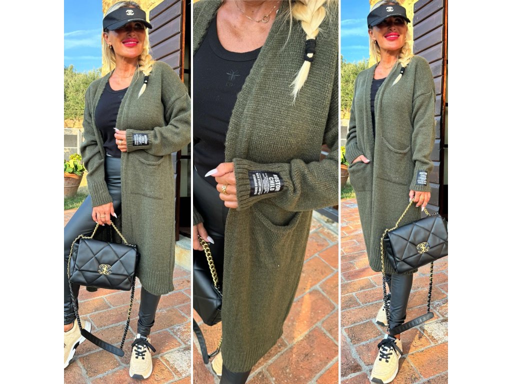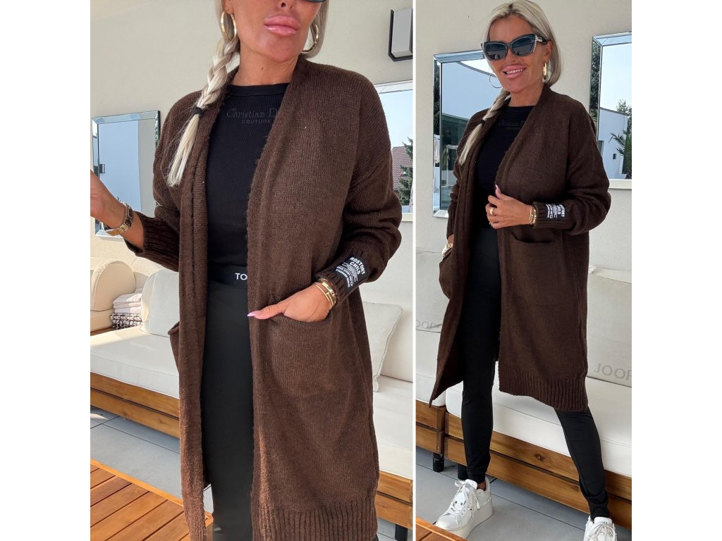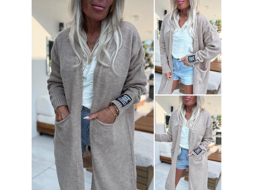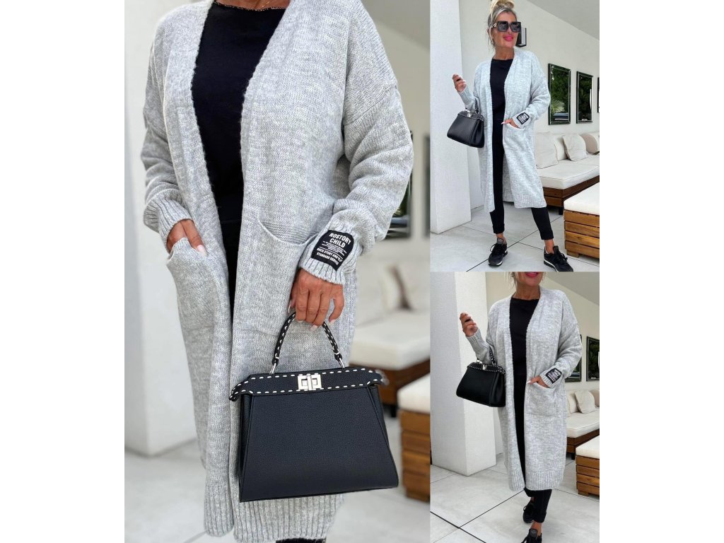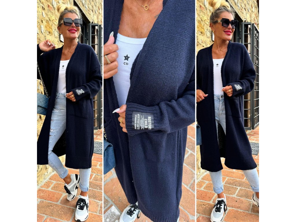 teplé, pletené kardigany s kapsami vepředu, nášivka na rukávu