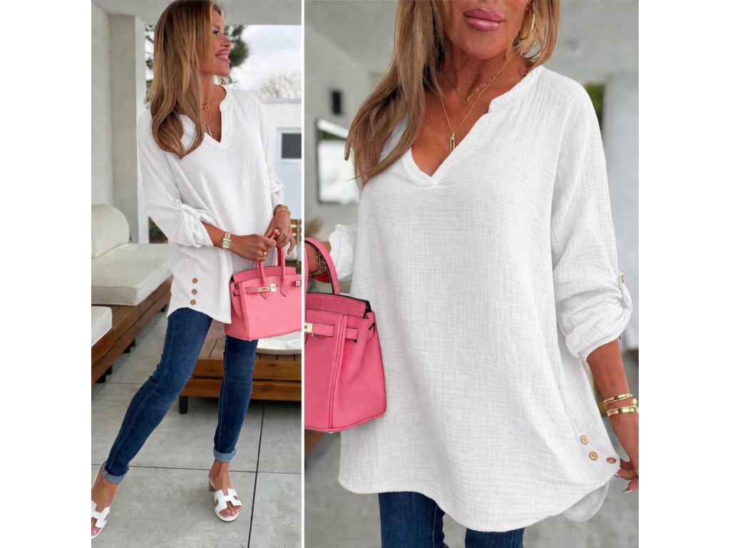 Mušelínová halenka Marry je vzdušný a pohodlný kousek, který spojuje ležérní eleganci s přírodním stylem.