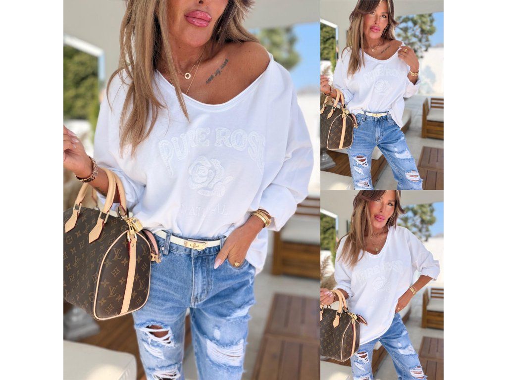 Nádherná luxusní oversize bavlněná halenka Pure Rose je stylový a výrazný kousek, který zaujme svým hlubokým výstřihem a uvolněným střihem.