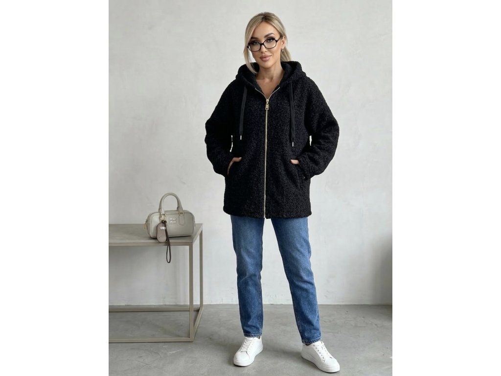 Asymetrický design dodává modelu moderní vzhled, zatímco kapuce, dvě kapsy a zapínání na zip zvyšují jeho praktičnost pro každodenní nošení.