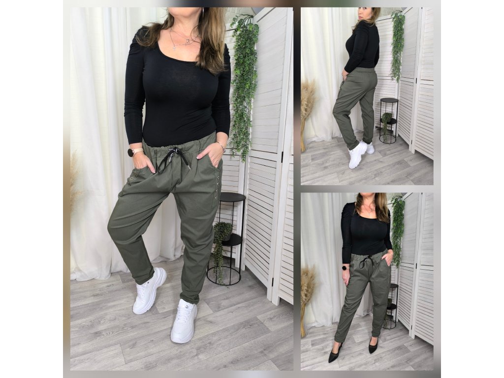 volnočasové elastické kalhoty, pas na gumu a šňůrku,