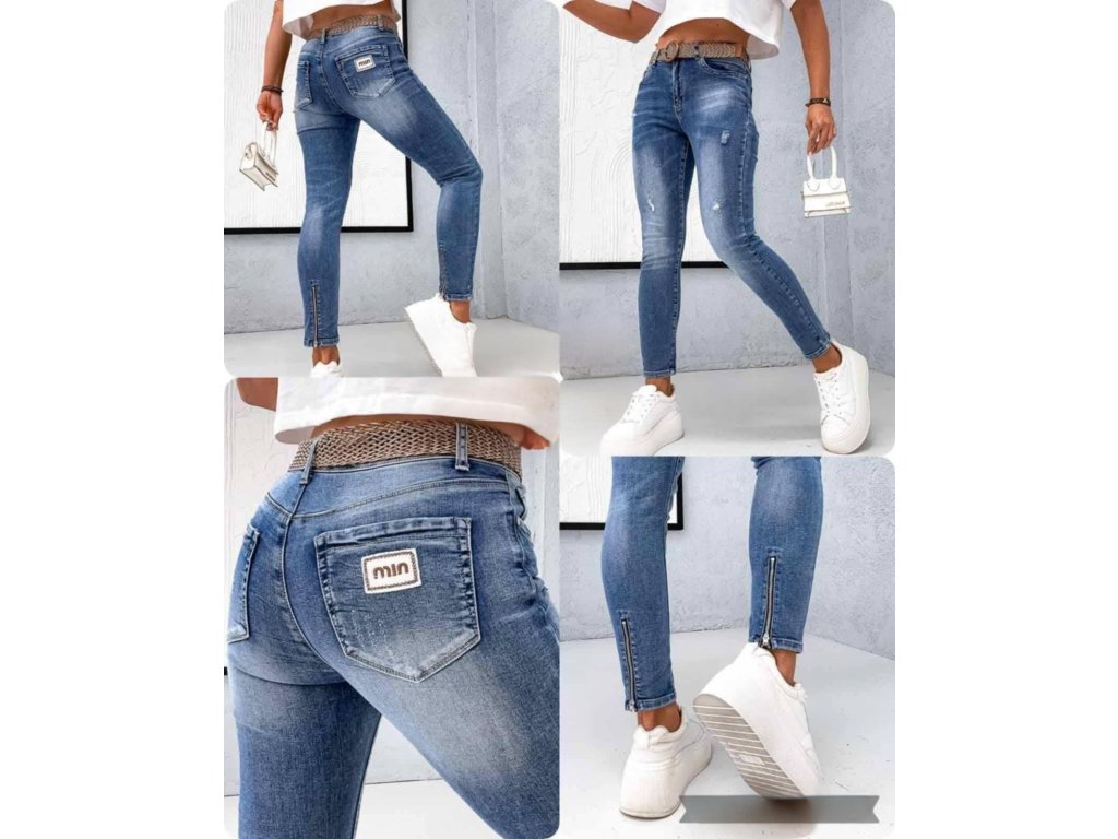 elastické rifle značky Itaimaska, měkké, pružné, na nohavicích zipek,