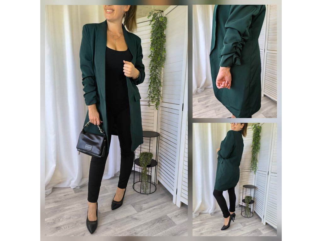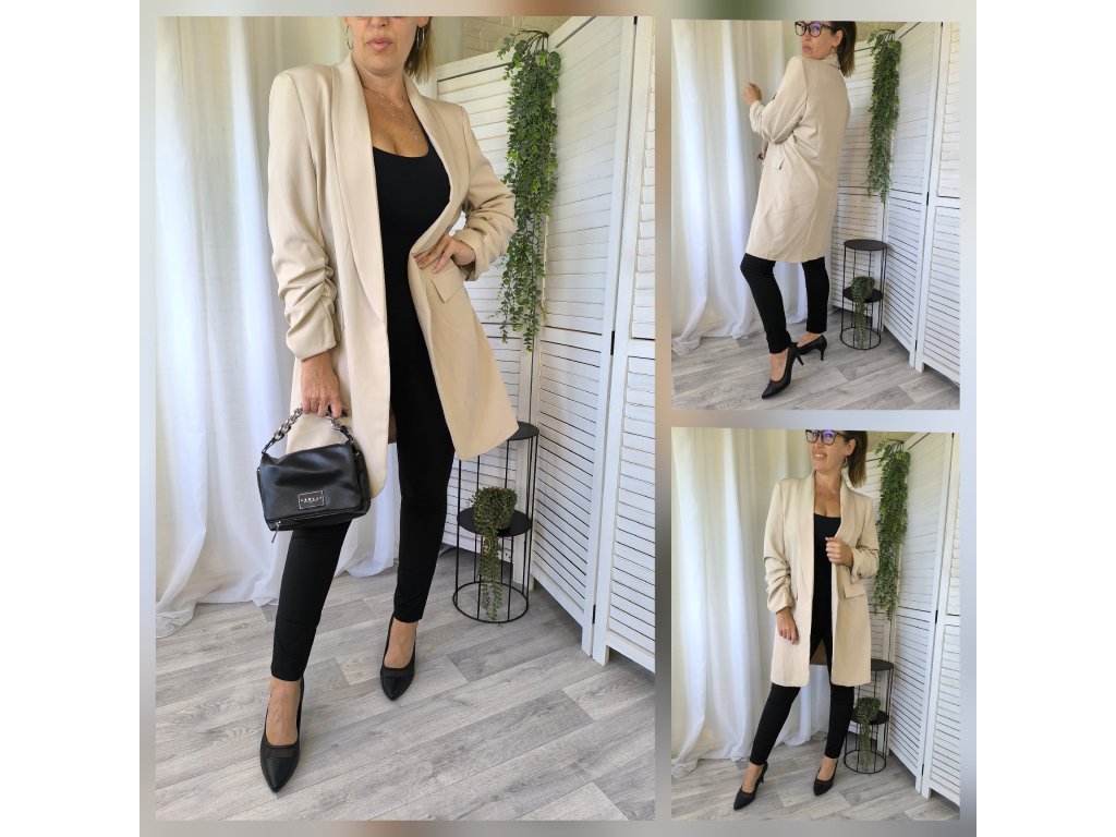 Rukávy jsou 3/4 s efektem řasení, super k teniskám na vyšší platformě.