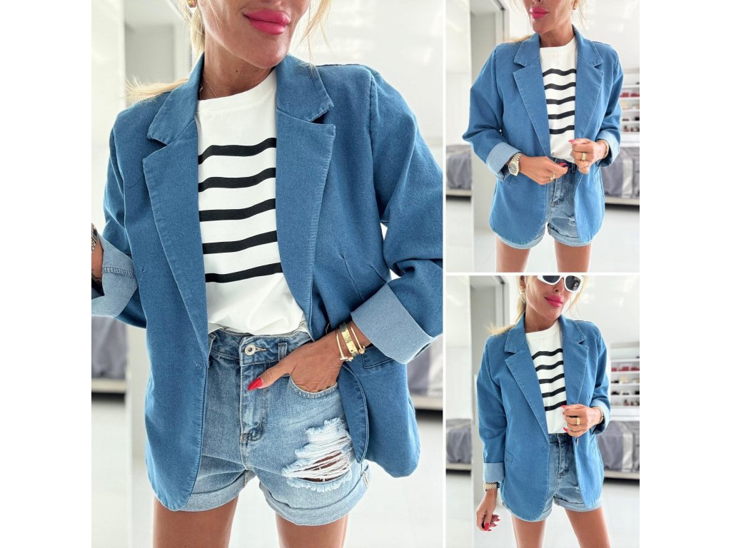 elastické sako džínového vzhledu, zapínání na jeden knoflík,