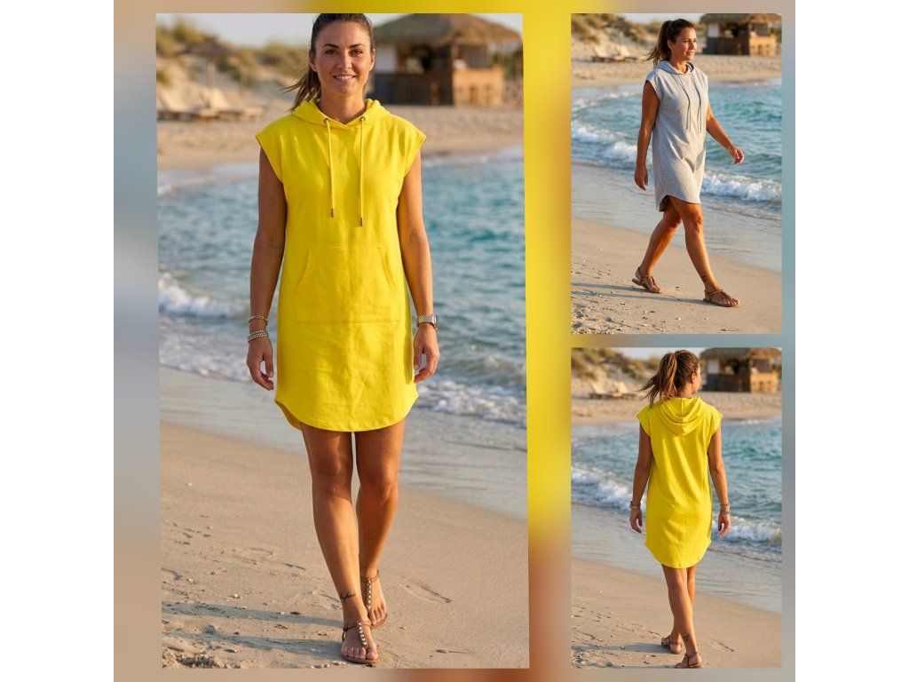bavlněné, příjemné šaty s kapucí a šňůrky, spodní část do kulatého lemu,