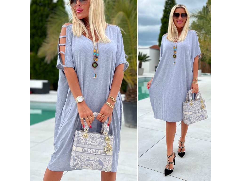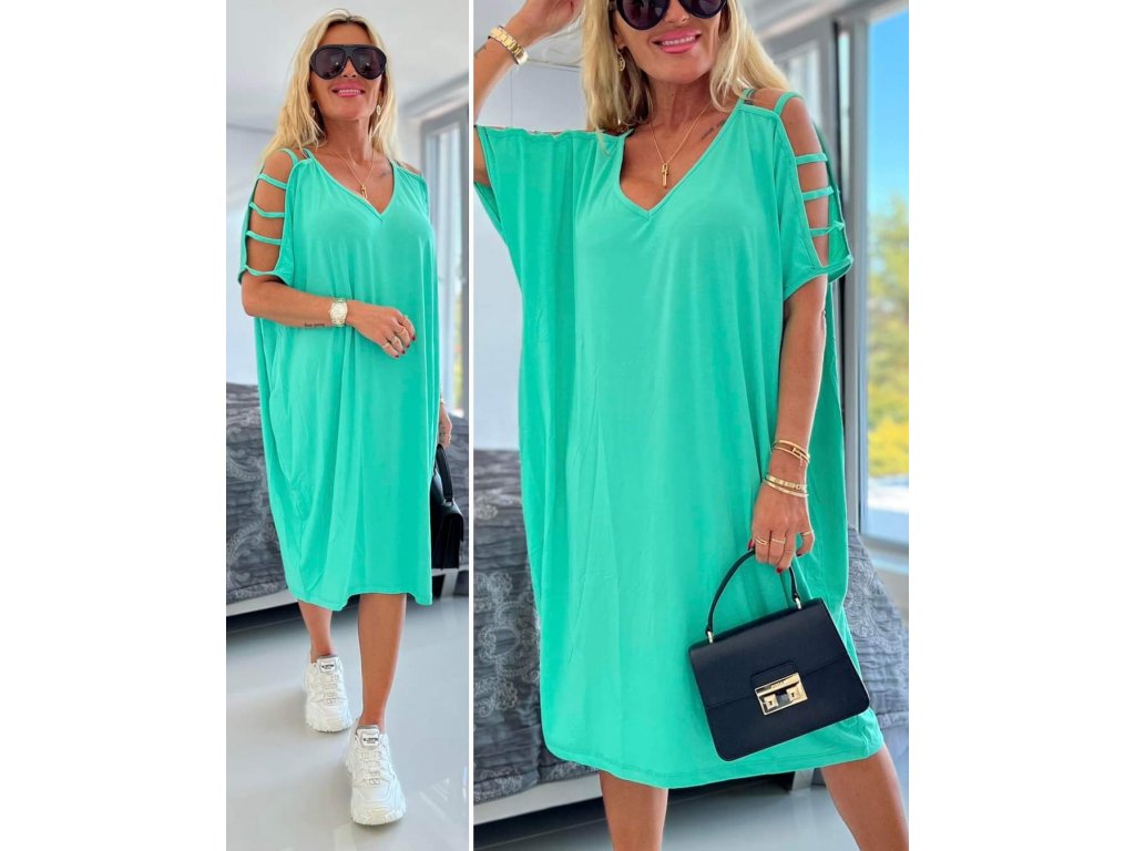 OverSize elastické šaty s odhalenými rameny a průstřihy