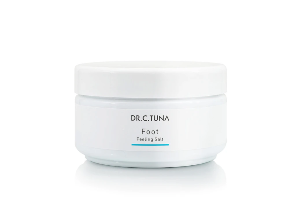 Dr. C. Tuna Peelingová sůl na chodidla: Maris Sal, Aqua / Water, Caprylic / Capric Triglyceride, Glycerin, Ceteareth-20, Stearic Acid, Cetyl Alcohol, Myristyl Myristate, Helianthus Annuus Seed Oil (slunečnicový olej), Glyceryl Stearate SE, Prunus Amygdalus Dulcis Oil (mandlový olej), Simmondsia Chinensis Seed Oil (jojobový olej), Fragrance / Parfum, Benzyl Benzoate, Hexyl Cinnamal, Linalool, Limonene, FD&C Blue No. 1 (CI 42090).
