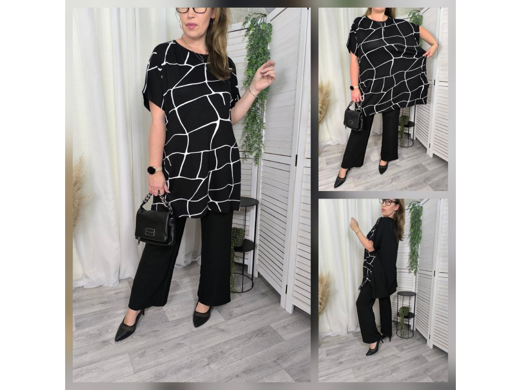 Elegantní černobílá kombinace se snadno kombinuje s legínami i džínami, takže je ideální pro každodenní outfity.